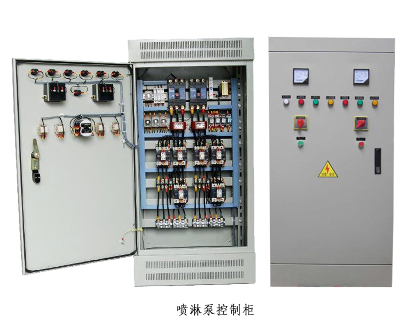 消防水泵控制柜一般有兩種控制方式:一種是消火栓控制,一種是噴淋泵控制。 噴淋泵控制柜的工作原理是:設計有壓力控制器常開觸點,當由于壓力差引起壓力繼電器動作時,控制回路使得主回路動作,然后啟動噴淋泵。