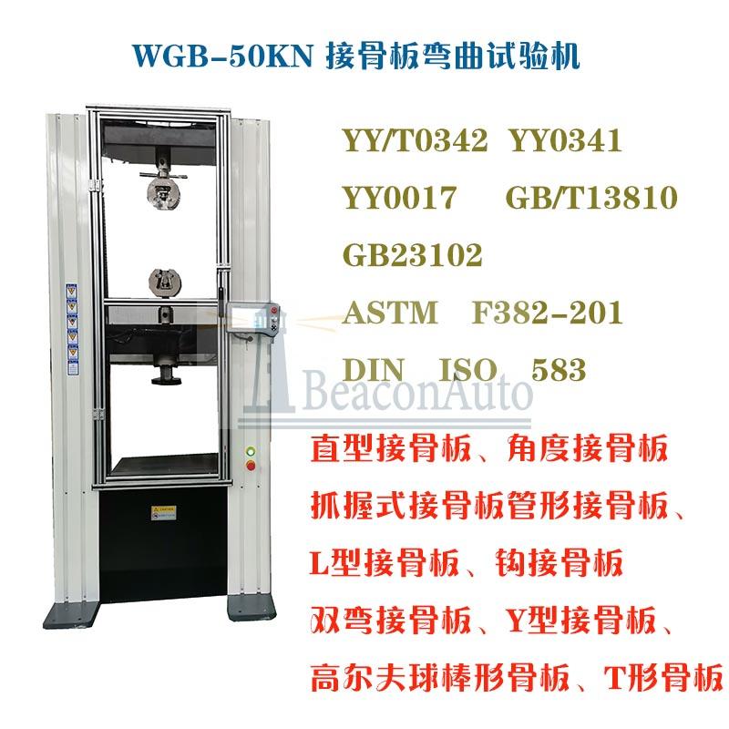 WGB-500醫(yī)用接骨板彎曲試驗機 醫(yī)用接骨板彎曲試驗機產(chǎn)品型號:WGB-500 醫(yī)用接骨板彎曲試驗機產(chǎn)品用途:醫(yī)用接骨板彎曲試驗機主要用于骨接合植入物金屬接骨板在室溫環(huán)境下進行拉伸試驗、壓縮試驗、彎曲試驗,以及骨科材料機械力學性能實驗測試及研究。 可測試以下材料:骨結(jié)合植入物、外科植入物、直型接骨板、角度接骨板、抓握式接骨板、管形接骨板、L型接骨板、鉤接骨板、雙彎接骨板、Y型接骨板、高爾夫球棒形骨板、T形骨板等。 可檢測以下技術(shù)指標:彎曲強度和剛度;等效彎曲剛度;載荷-撓度曲線;撓度;抗拉強度;屈服強度;上屈服強度;下屈服強度;規(guī)定非比例延伸強度;斷后伸長率;斷面收縮率等。 醫(yī)用接骨板彎曲試驗機依據(jù)標準: 1. YY/T0342 -外科植入物接骨板彎曲強度和剛度的測定; 2. YY0341-骨接合用無源外科金屬植入物通用技術(shù)條件 3. YY0017-骨接合植入物金屬接骨板 4. GB/T13810-外科植入物用鈦及鈦合金加工材 5. GB23102外科植入物金屬材料Ti-6Al -7Nb合金加工材 6. ISO 5832-12-外科植入物.金屬材料.第12部分:鍛造鈷鉻鉬合金; 7. ISO 13356- 外科植入物.釔穩(wěn)定正方晶相氧化鋯(Y-TZP) 陶瓷材料 8. NF S94-063-外科植入物-Yttri a穩(wěn)定的四角形鋯基陶瓷材料; 9. ASTM F382-201 4金屬骨板規(guī)格與試驗方法; 10.DIN ISO 5832-9- 外科植入物金屬材料第9部分:鍛制高氮不銹鋼 醫(yī)用接骨板彎曲試驗機產(chǎn)品特點: 1. 精密無間隙滾珠絲杠、高剛性、高穩(wěn)定性的門式載荷機架,機架尺寸可定制。 2.高精度測力器,線性寬,穩(wěn)定性好,保證載荷的測力精度。 3.高速率、低振動、免維護、靜音型交流伺服電機驅(qū)動系統(tǒng)。 4.電路板采用光電隔離設計,具有抗干擾能力強的特點。 5.內(nèi)置以太網(wǎng)接口;方便的手持控制器,即停即行功能;操作靈活、隨意切換。 6.多種完善的試驗夾具,快速更換;可選T型工作臺、防旋轉(zhuǎn)夾具/附件裝置、環(huán)境系統(tǒng)、引伸計。 7.寬泛的測試速度0.001 ~600mm/min (可定制高速試驗機1000mm/min; 1500mm/min; 2000mm/min) 。 8.全數(shù)字閉環(huán)、多通道、多功能、易操控的HLXK-Test測控軟件;多種標準方法(國標、英標、美標、德標、澳標、日標、意標、俄標、歐標/GB、IS0、 JIS、 ASTM、DIN、BS、EN)。 9.試驗過程的自動控制、數(shù)據(jù)采集、處理、分析、存儲及顯示。 10.載荷自動保持、應力、應變控制、循環(huán)控制及自編程控制等多種控制方式。 11.控制模式智能設置,控制方式之間無沖擊、平滑切換,加載、卸載平穩(wěn)。 12.過程再現(xiàn)和數(shù)據(jù)再分析、曲線放大、比較、遍歷;曲線可自由放大和縮小;滿度自調(diào)。 13.靈活的Exce1或Word報告格式,可選擇、指定、排序、單獨、合并、多類型輸出。 14.試驗結(jié)束自動返回,智能、高效、快捷。 15.多重保護功能:試驗力過載保護;過流、過壓保護;試樣破斷時安全保護;超溫保護;干燒保護;缺水保護;操作提示向?qū)ПWo;試驗結(jié)束自動保護等。 醫(yī)用接骨板彎曲試驗機主要技術(shù)指標: 1. 最大試驗力:20kN 2. 測 量 范 圍:最大試驗力的0.4%-100%。 3. 試驗力精度:優(yōu)于示值的±0.5% 4. 試驗力分辨力:1/300000(全程不分檔或等效6檔) 5. 橫梁位移測量精度:分辨率高于0.001mm 6. 變形測量精度:±0.5%(在0.2-10mm范圍內(nèi)) 7. 試驗速度范圍:0.01-500mm/min,無級調(diào)速 8. 速度控制精度:±1%(0.01-10mm/min);±0.5%(10-500mm/min) 9. 恒力、恒變形、恒位移控制范圍:0.2%-100%FS 10. 夾具形式:見附件 11. 整機電源:單相,220V±10%,50Hz,功率:1.5kW 12. 工作環(huán)境:室溫—35℃,相對濕度不超過80% 13. 主機尺寸:760mm×530mm×1760mm 14. 整機重量:420kg 更多醫(yī)用接骨板彎曲試驗機資料請聯(lián)系我們濟南信標自動化設備有限公司。專業(yè)生產(chǎn)液壓萬能試驗機,疲勞試驗機,扭轉(zhuǎn)試驗機,高溫蠕變試驗機,彈簧試驗機,彎曲試驗機,沖擊試驗機,彎曲強度試驗機,抗拉強度試驗機等。