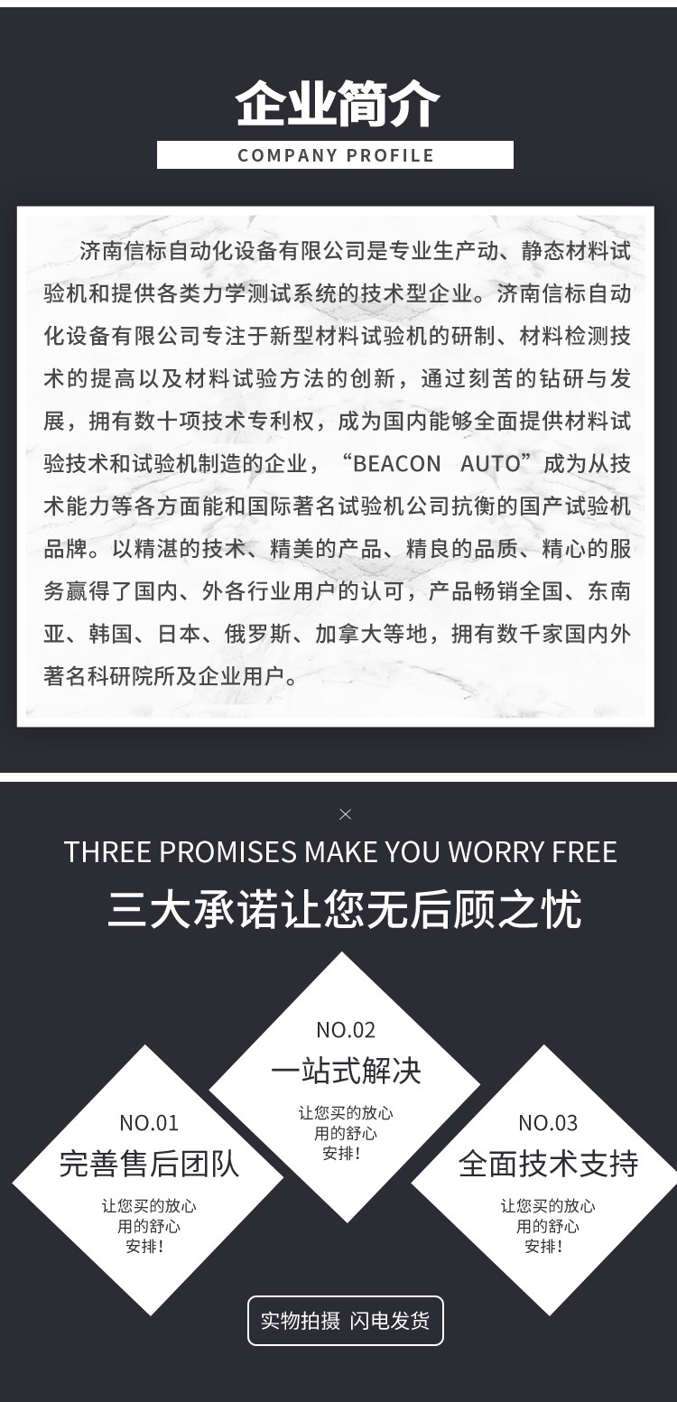 濟南信標自動化設備有限公司主要生產:動靜態(tài)萬能疲勞試驗機,接骨板彎曲試驗機,縫合線拉伸疲勞試驗機,髖膝關節(jié)磨損試驗機,電子萬能試驗機、液壓萬能試驗機、巖石三軸、四軸,電液拉力試驗機,材料試驗機,高低溫蠕變,高低頻疲勞,拉伸、扭轉、杯突等二十多個系列兩千多個的品種。