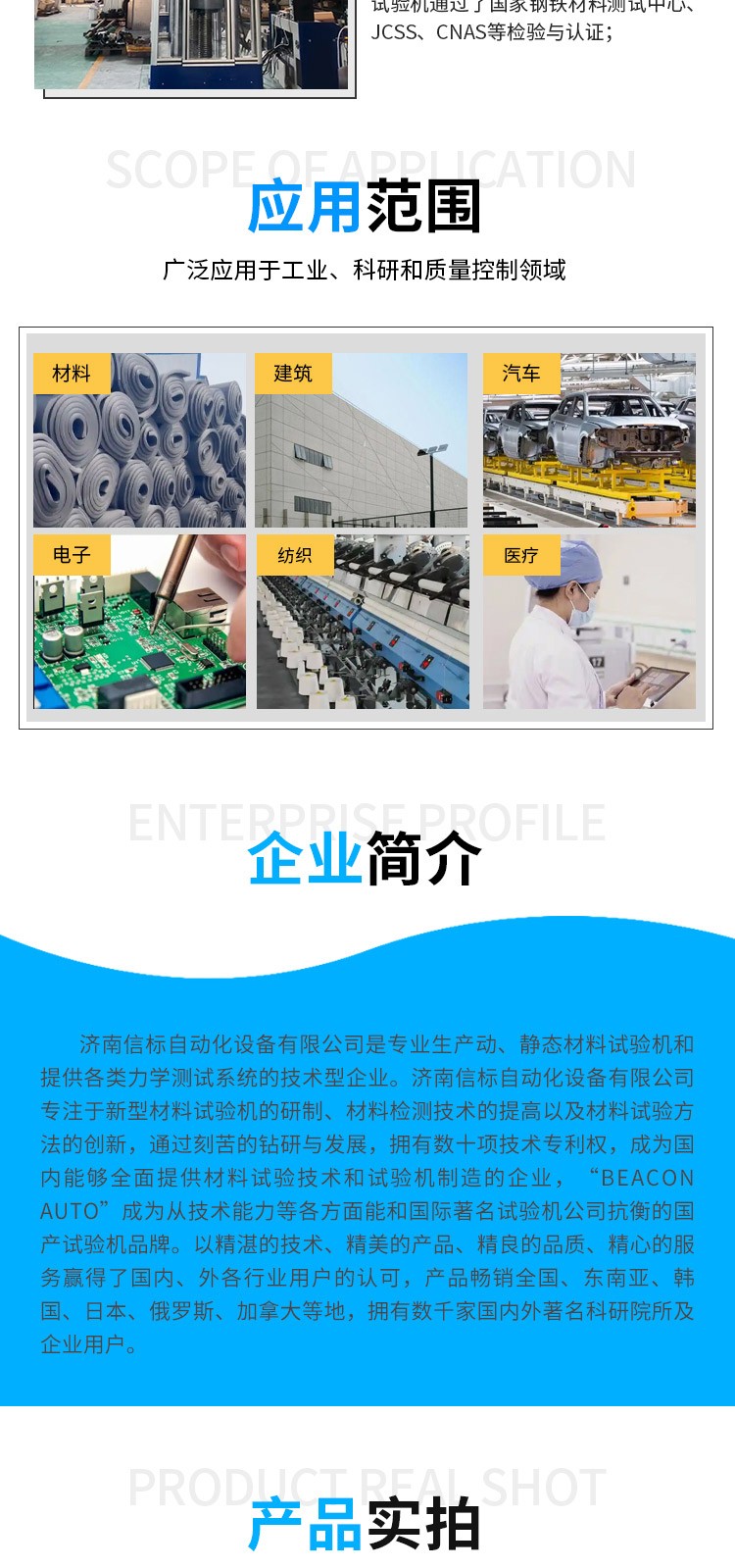 濟南信標自動化設備有限公司主要生產:動靜態萬能疲勞試驗機,接骨板彎曲試驗機,縫合線拉伸疲勞試驗機,髖膝關節磨損試驗機,電子萬能試驗機、液壓萬能試驗機、巖石三軸、四軸,電液拉力試驗機,材料試驗機,高低溫蠕變,高低頻疲勞,拉伸、扭轉、杯突等二十多個系列兩千多個的品種。