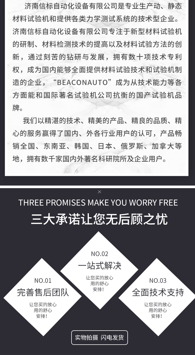 濟南信標(biāo)自動化設(shè)備有限公司主要生產(chǎn):動靜態(tài)萬能疲勞試驗機,接骨板彎曲試驗機,縫合線拉伸疲勞試驗機,髖膝關(guān)節(jié)磨損試驗機,電子萬能試驗機、液壓萬能試驗機、巖石三軸、四軸,電液拉力試驗機,材料試驗機,高低溫蠕變,高低頻疲勞,拉伸、扭轉(zhuǎn)、杯突等二十多個系列兩千多個的品種。
