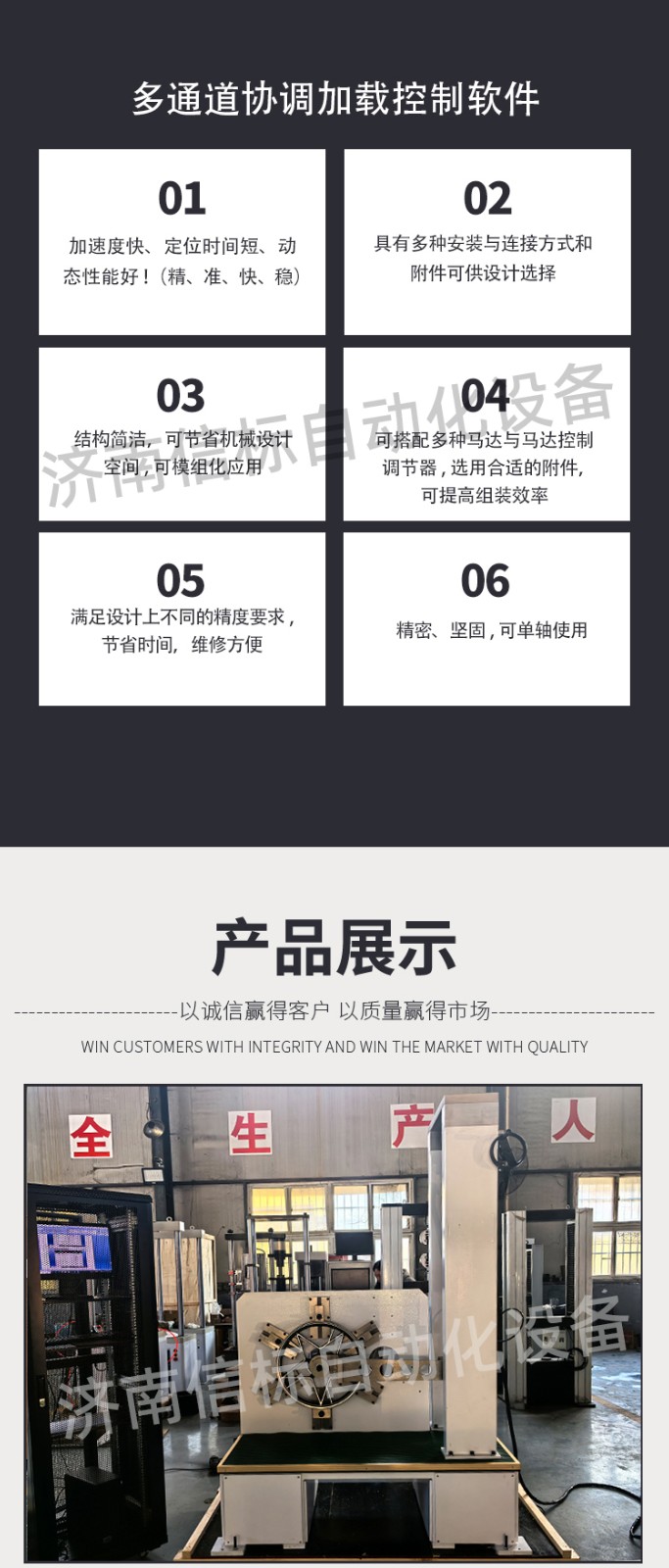 濟南信標自動化設備有限公司主要生產:動靜態萬能疲勞試驗機,接骨板彎曲試驗機,縫合線拉伸疲勞試驗機,髖膝關節磨損試驗機,電子萬能試驗機、液壓萬能試驗機、巖石三軸、四軸,電液拉力試驗機,材料試驗機,高低溫蠕變,高低頻疲勞,拉伸、扭轉、杯突等二十多個系列兩千多個的品種。