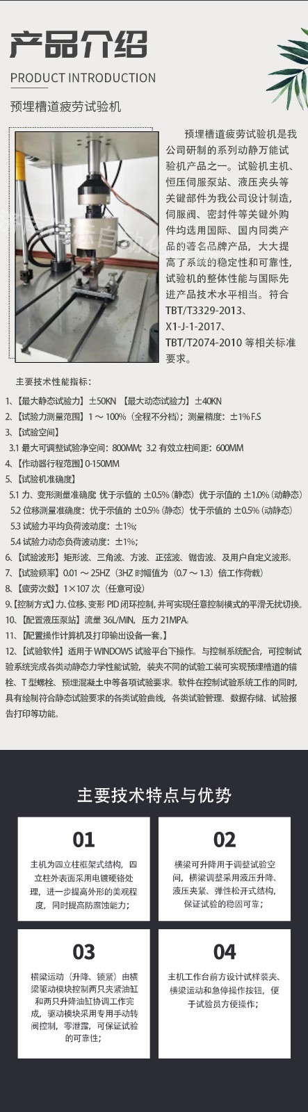電液伺服接觸網預埋槽道疲勞壽命試驗機