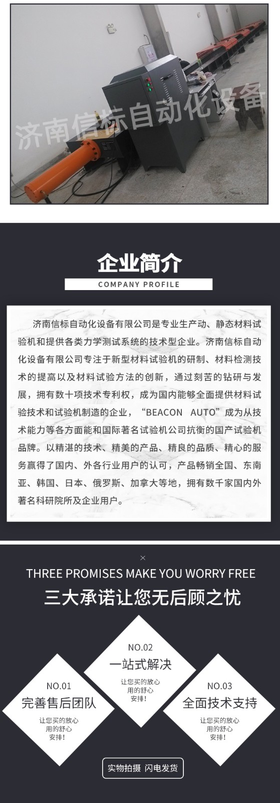 濟南信標自動化設備有限公司主要生產:動靜態萬能疲勞試驗機,接骨板彎曲試驗機,縫合線拉伸疲勞試驗機,髖膝關節磨損試驗機,電子萬能試驗機、液壓萬能試驗機、巖石三軸、四軸,電液拉力試驗機,材料試驗機,高低溫蠕變,高低頻疲勞,拉伸、扭轉、杯突等二十多個系列兩千多個的品種。